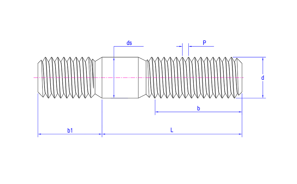 | Charakteristiky vzhledu | Válcové části se závity na obou koncích, obvykle kovové, s nezávitovou částí uprostřed |